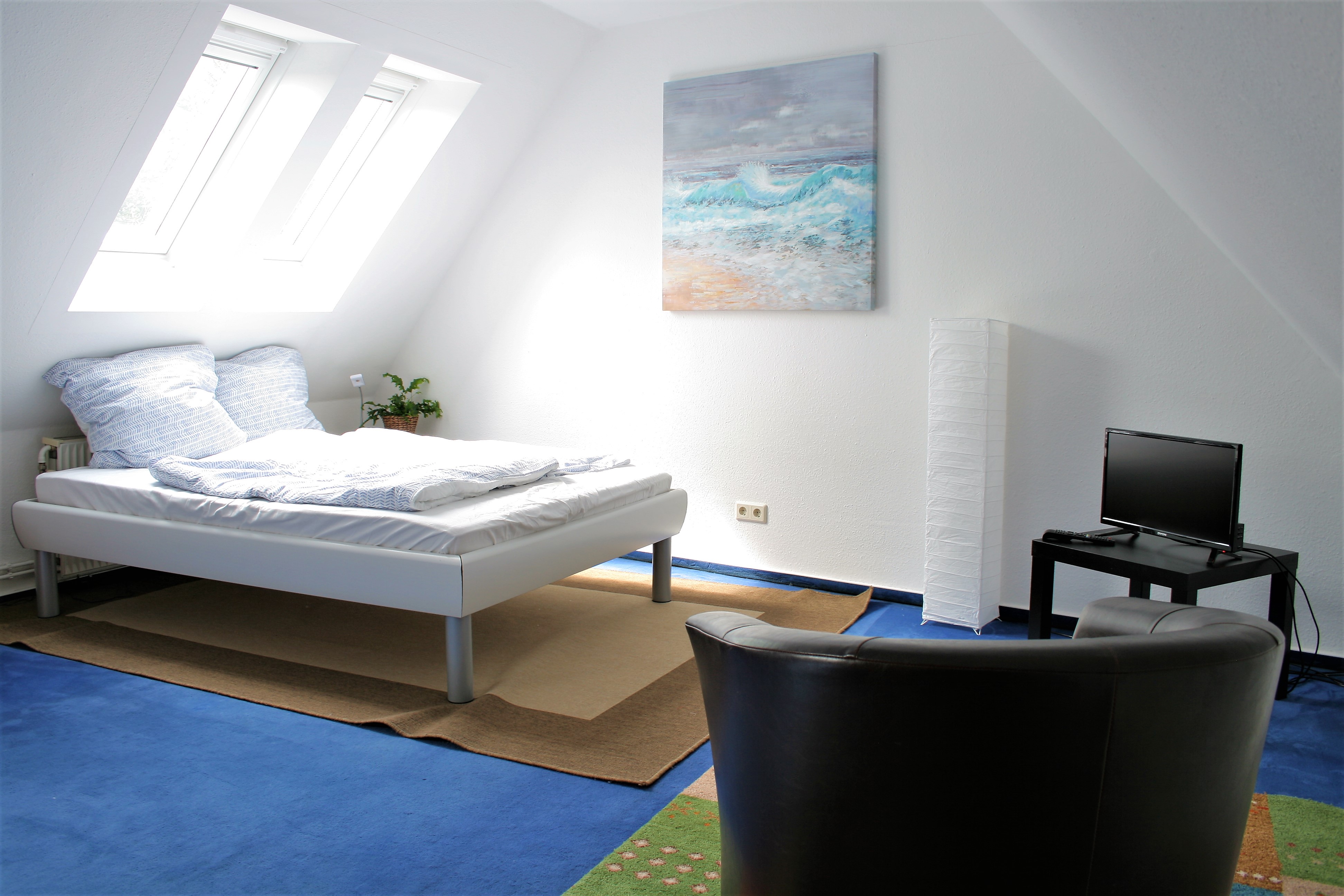 In dem lichtdurchfluteten Wohnzimmer mit Schlafmöglichkeit und Zugang zum Balkon lässt es sich entspannen und tolle Abende mit Freunden, Spielen und Büchern verbringen. Die Fernseher der Ferienwohnung verfügen über HDMI- Anschlüsse und -kabel, so dass man seinen Laptop anschließen und Lieblingsserien und Filme online gucken kann.