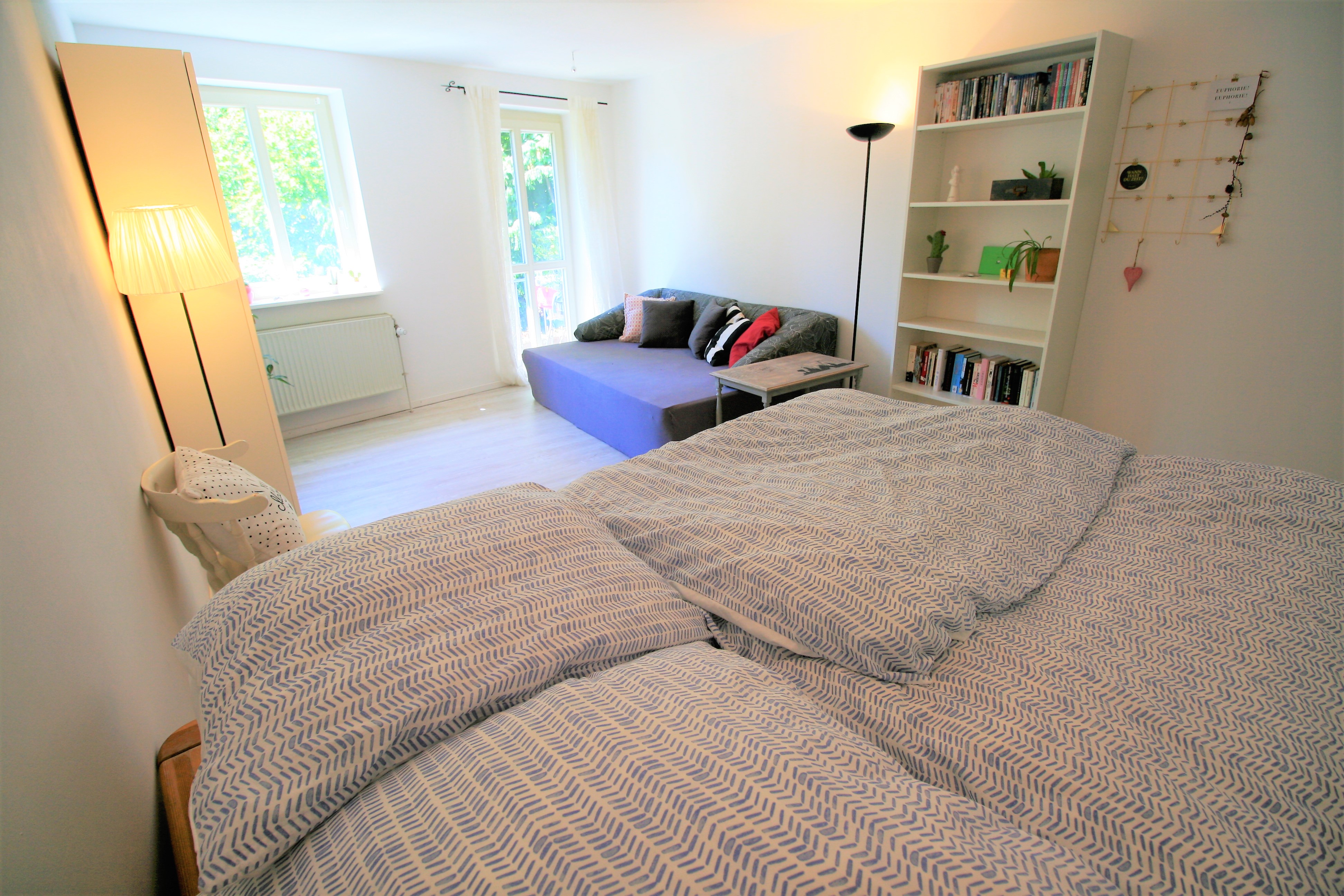 Beide Schlafzimmer verfügen über einen Balkonzugang. Im zweiten Schlafzimmer befinden sich ein Doppelbett (140x200cm) sowie ein Schlafsofa (140x200cm).