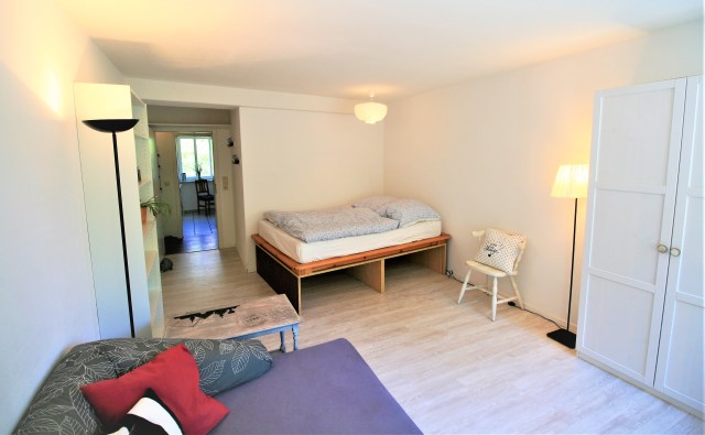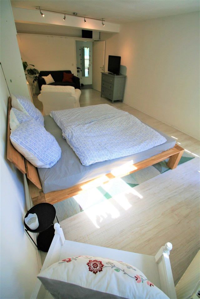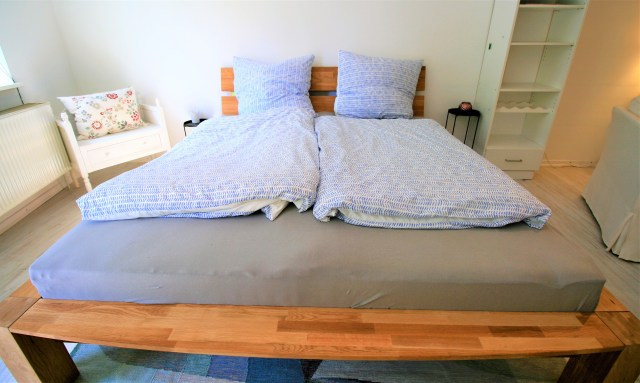 Die Ferienwohnung bietet viel Platz für bis zu 4 Personen. Auf einer Ebene befinden sich Schlafzimmer, Küche und Badezimmer. Das eine Schlafzimmer ist ausgestattet mit einem großen Doppelbett (180x200cm) sowie einer gemütlichen Sitzecke.
